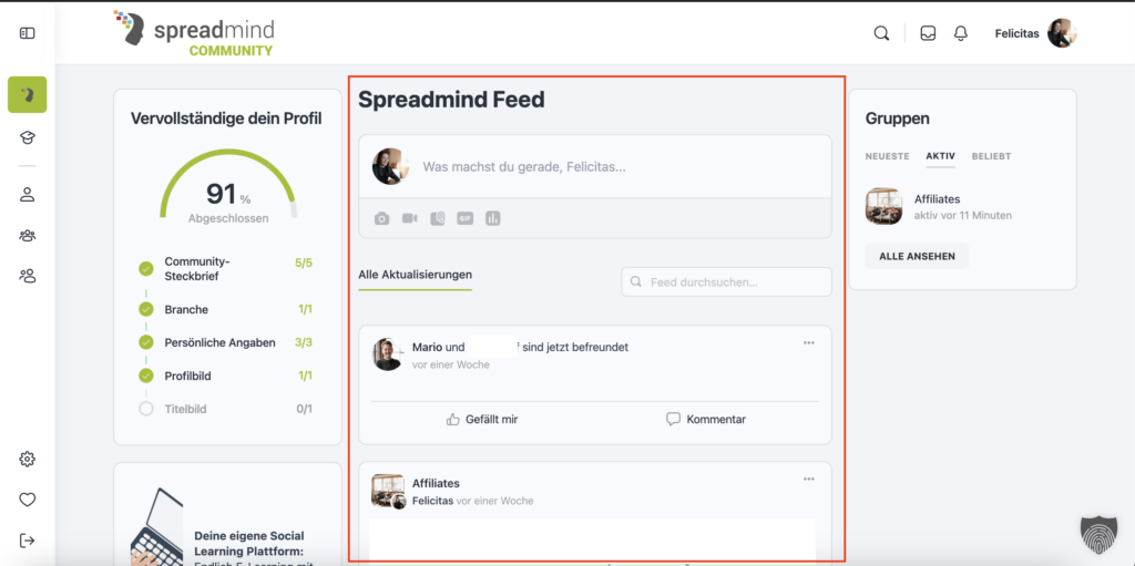 Modul 2: Einführung in die Social E-Learning FeaturesIntegrierter Schutz einer Spreadmind Plattform