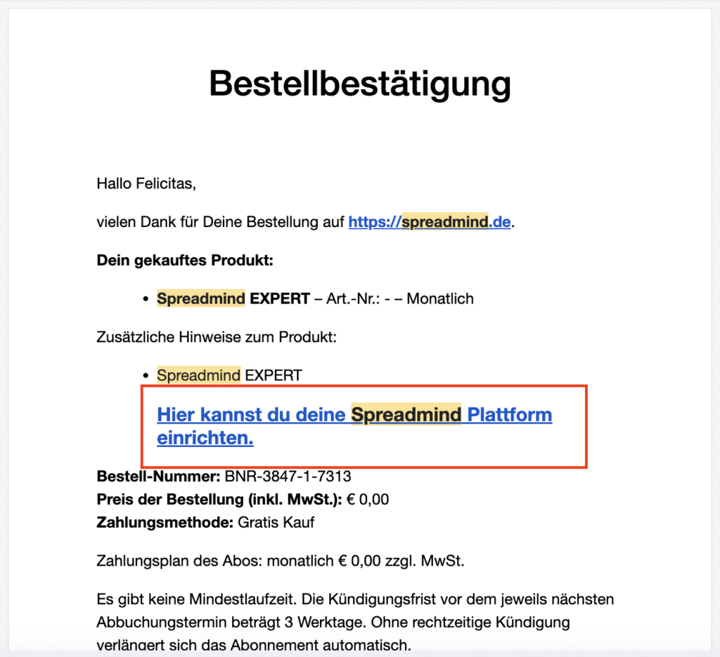 Nach dem Kauf bekommst du eine Kaufbestätigung per Mail. Das Anlegen der Plattform geht ganz einfach per Klick auf den in der Bestätigungsmail gesendeten Link: